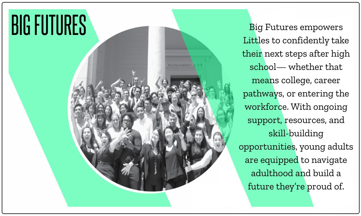 Los Angeles is home to one of the most diverse populations in the country and our Littles—many of whom come from underserved communities—face many difficult challenges. Nearly 65% live in single family homes or with non-parental guardians who do not have the time or resources to enjoy or explore educational, cultural or recreational opportunities. This explains why a significant percentage of the children we serve have never swam in the ocean, touched snow, hiked a mountain or set foot on a college campus. At Big Brothers Big Sisters of Greater Los Angeles, we serve nearly 1,500 youths and children between the ages of 6-18, through our six, unique mentoring programs and welcome all children to apply regardless of gender, ethnicity, sexuality, socioeconomic or citizenship status.